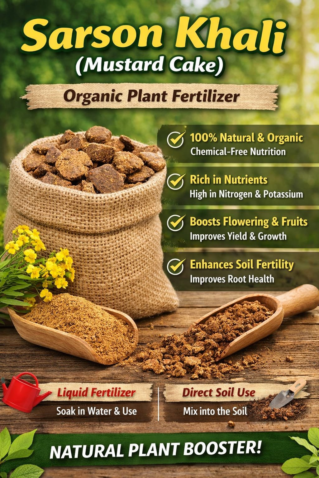 Quantity: 1 kg Form: Solid (cake pieces/powder) Type: Organic fertilizer Application: Soil mix / liquid feed