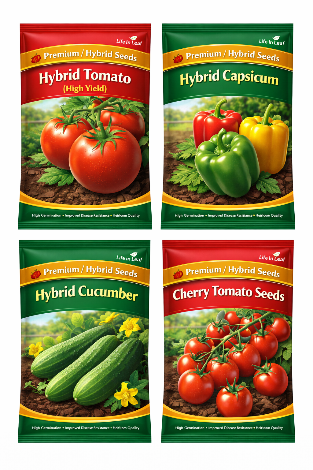 High-yield Life in Leaf , Hybrid Tomato , Hybrid Capsicum, Hybrid Cucumber, Cherry Tomato Seeds
