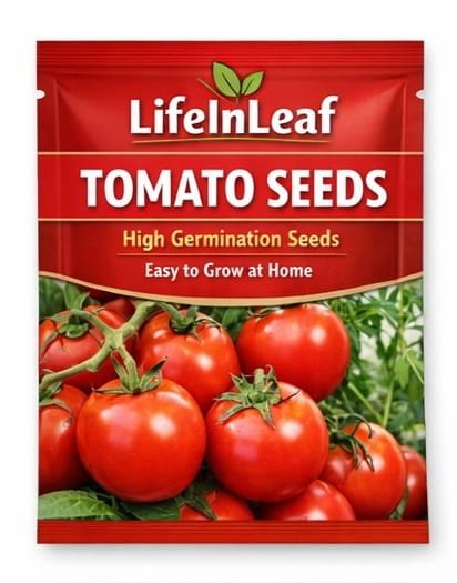 High-germination LifeInLeaf tomato seeds produce juicy, bright red tomatoes with a classic sweet-tangy flavor. Easy to grow at home in pots, grow bags, or garden beds with full sun and regular watering.